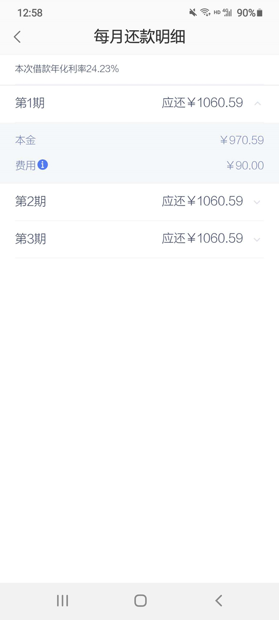 当笔者下载好拍拍贷,并试验贷款3000元分3期时,发现其借款年化利率高达24.23%,费用详情显示借款人需要缴纳的费用除了利息外,还包括服务费和风险保障费及其服务费。