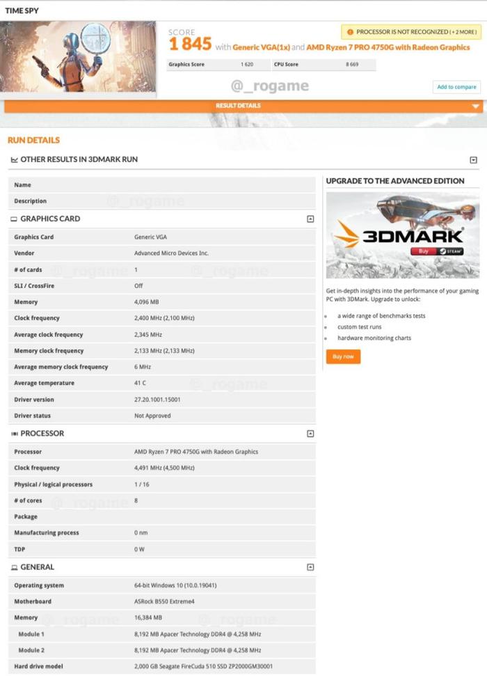 6 月 16 日消息 根据爆料者 @_rogame 的消息,AMD 即将推出的桌面 APU R7 PRO 4750G 的跑分再创新高,这次搭配的内存频率达到了 DDR4-4258。