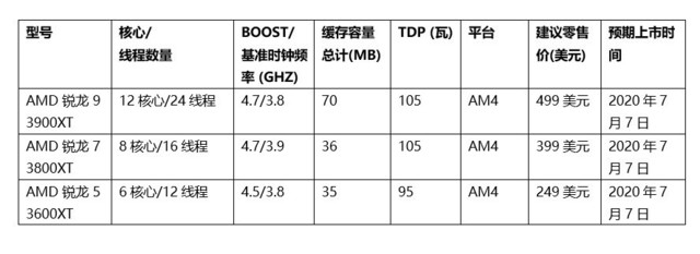 全球顶级零售商和电商预计将于2020年7月7日起开始销售AMD锐龙5 3600XT、锐龙7 3800XT和锐龙9 3900XT处理器;AMDA520系列主板预计将于2020年8月上市,合作的主板厂商包括华擎、华硕、映泰、七彩虹、技嘉和微星等。