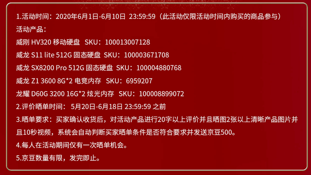 总的来说,这次威刚的“京喜618嗨购不停”活动还是非常不错的,毕竟活动期间参与晒单送500京东的产品比较多,而且关注店铺和签到同样也有京豆领取,整体还是非常值得参与的。