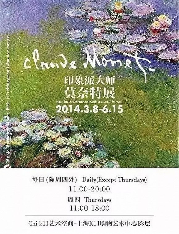 2014年3月8日,为期三个月的“印象派大师·莫奈特展”在上海K11购物艺术中心艺术空间揭幕。