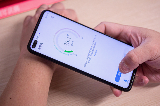 据悉,Play4 Pro 测温功能可精确到 0.1 摄氏度,荣耀Play4 Pro 机身背部加入了一颗红外温度传感器,传感器通过接收红外能量来判定被测对象的温度。这是一种红外能量接收器,吸收人体/物体散发出的红外能量来计算温度,手机本身并不发射红外光线。相比传统的水银测温计,不易碎,更安全。