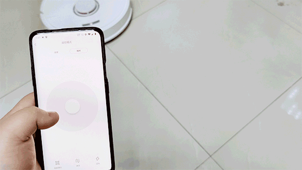 如果觉得无聊的话,石头扫地机器人T7甚至能够化身遥控车,通过手机就可以控制机器人直接移动,摇杆控制机器人前进、后退、旋转,直接控制扫地机器人前往污渍区域进行清扫。