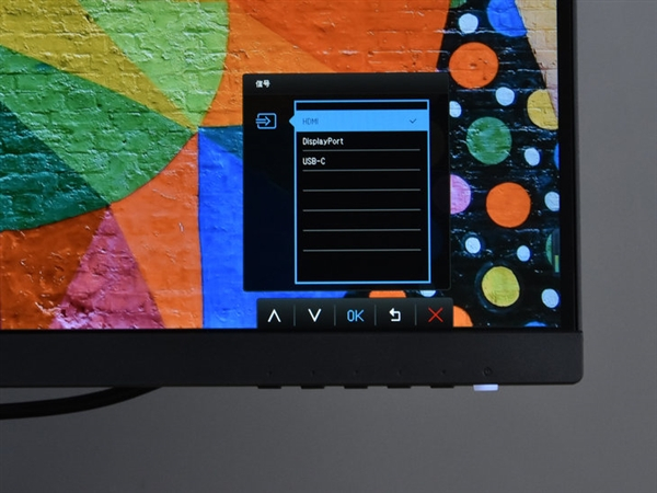 点击信号输入按键,屏幕右下角会调出信号输入选择界面。从图中可以看出,笔者正在连接的是HDMI 接口。