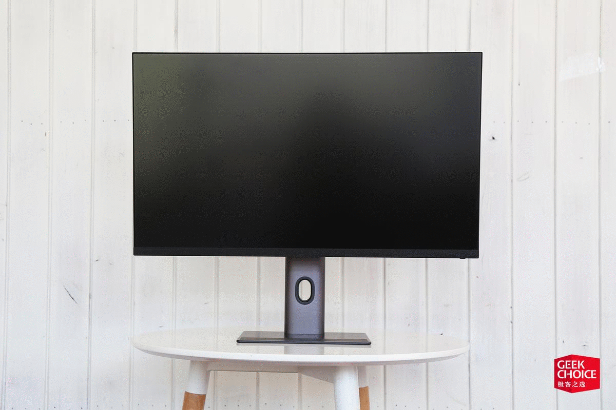 在息屏状态下,显示器的边框肉眼可见的窄,官方给出的数据为 1.6mm。即使开机,整个显示器也能给人足够的沉浸感。