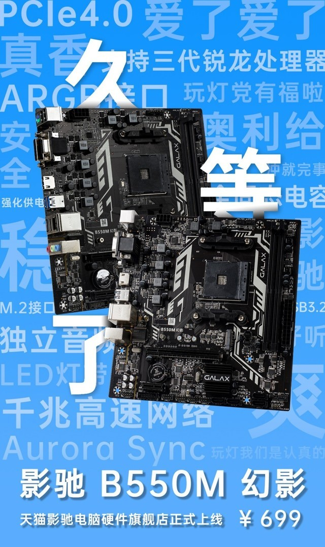 6月16日,AMDB550主板正式解禁,影驰B550M 幻影主板同日上线发售,天猫影驰电脑旗舰店首发价699元!