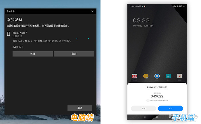 手机端也是同样的操作,当电脑端发起连接后,手机端也会同步显示秘钥,如果两者的秘钥完全一致,就可以点击手机上的“配对“图标,将手机与电脑连通。