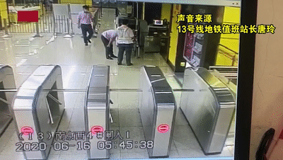 值班站长唐玲将他领进办公室询问情况。