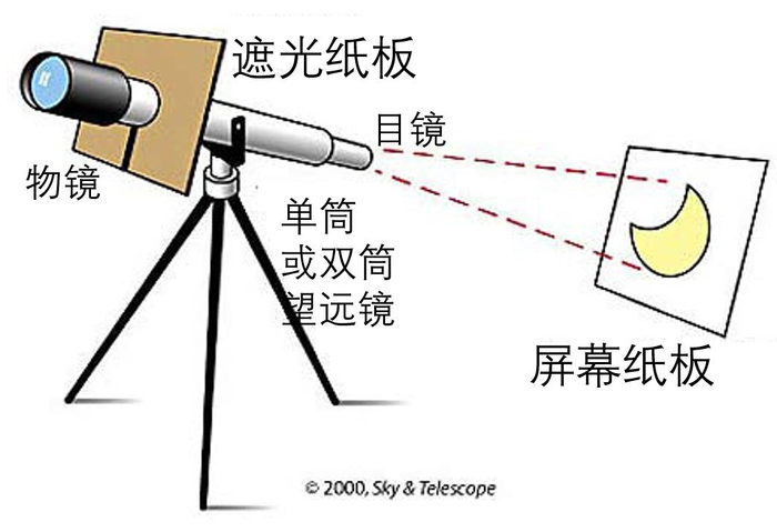 这样可以得到直径比较大的太阳实像。所以这个方法不仅适合观测日食,还可以用来观察太阳上比较大的黑子,以及金星或水星凌日等现象。
