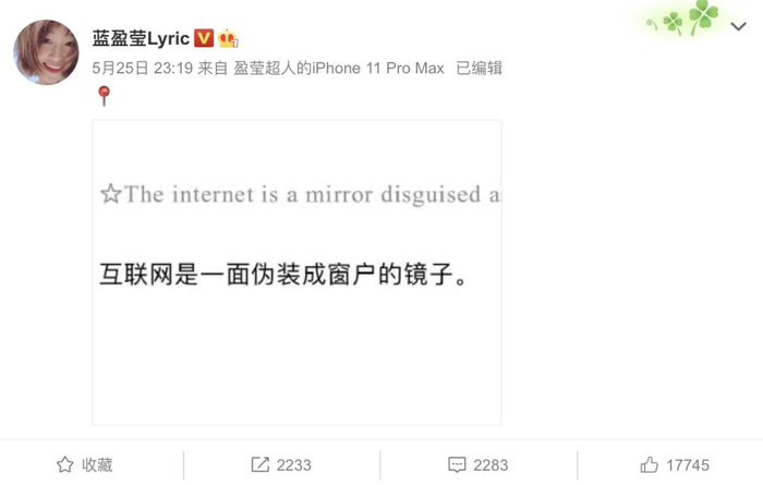 蓝盈莹微博上,曾分享过这样一句话: