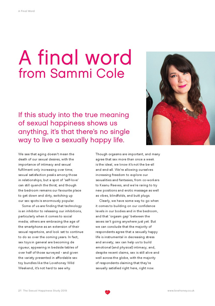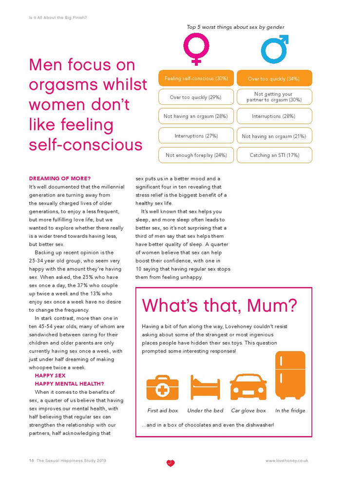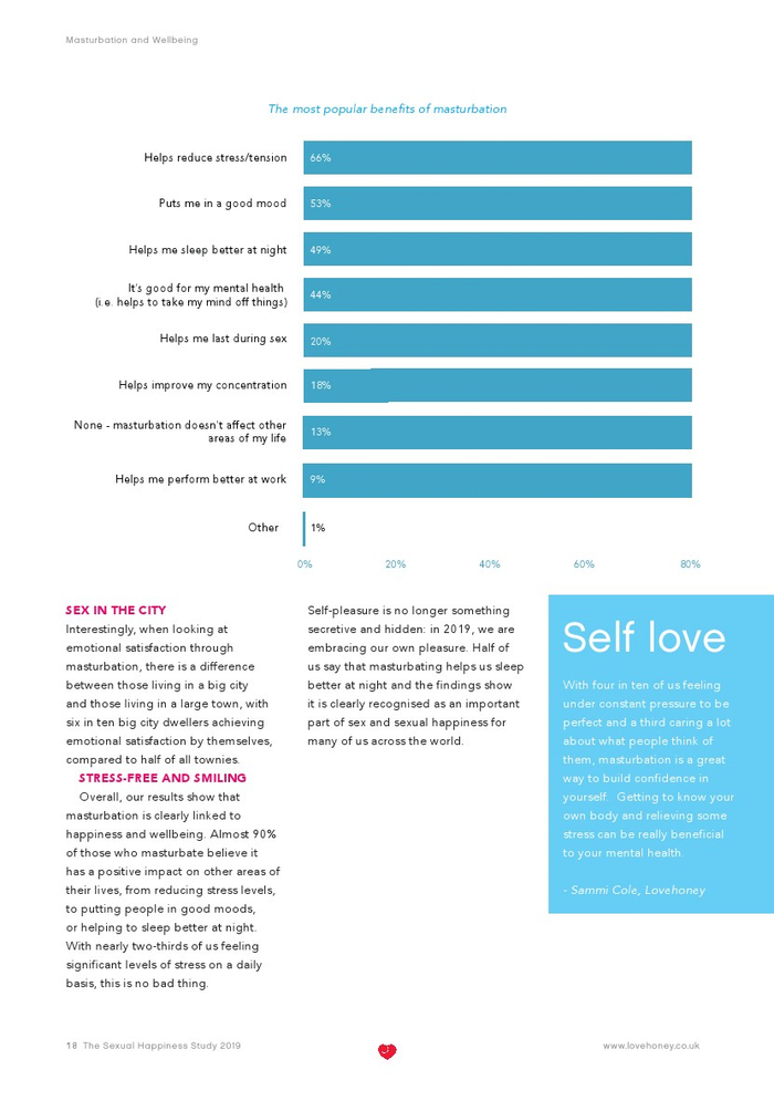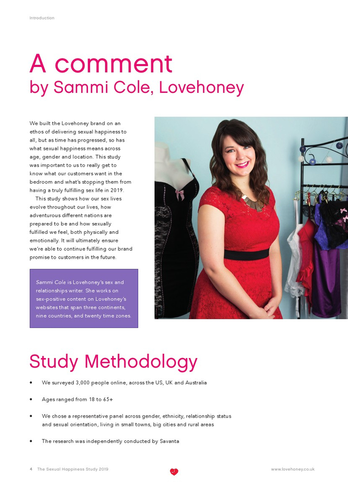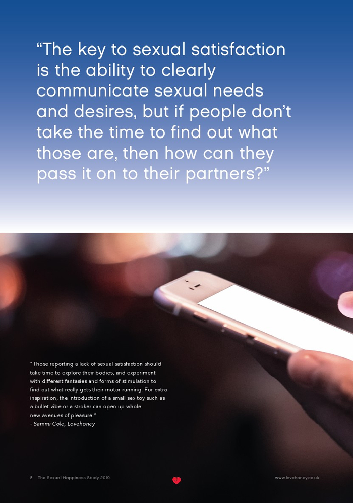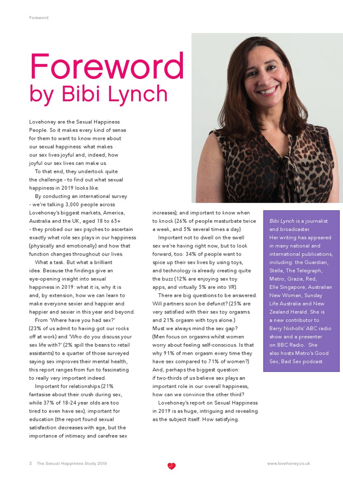 Lovehoney发布了“2019年性福报告”。Lovehoney采访了美国、澳大利亚和英国等3000名年龄在18到65岁以上的成年人。对性心理进行的调查希望确定性在幸福感(身体和情感)中扮演着什么角色,以及这种作用在一生中是如何变化的。