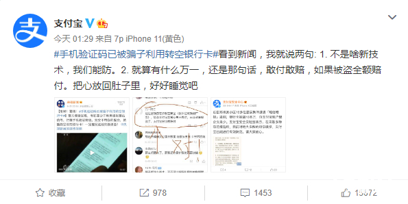 手机验证码被不法分子利用转空银行卡 支付宝霸气回应:我们能防