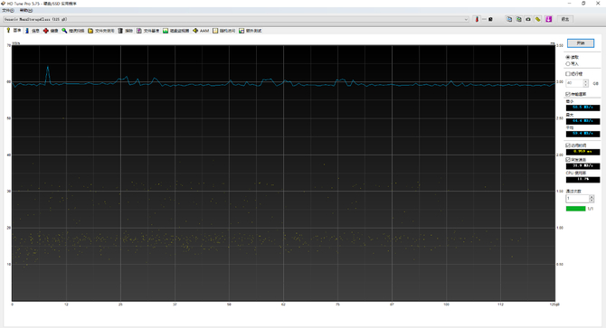 使用HD Tune Pro进行全盘读取测试,我们也可看到铠侠EXCERIA 极至瞬速系列microSD存储卡128GB版的读取速度基本稳定,全程没有出现明显掉速,表现令人惊喜。