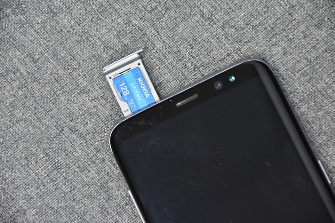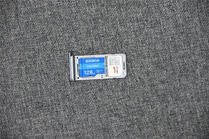 将铠侠EXCERIA 极至瞬速系列microSD存储卡装入手机的卡槽中固定。