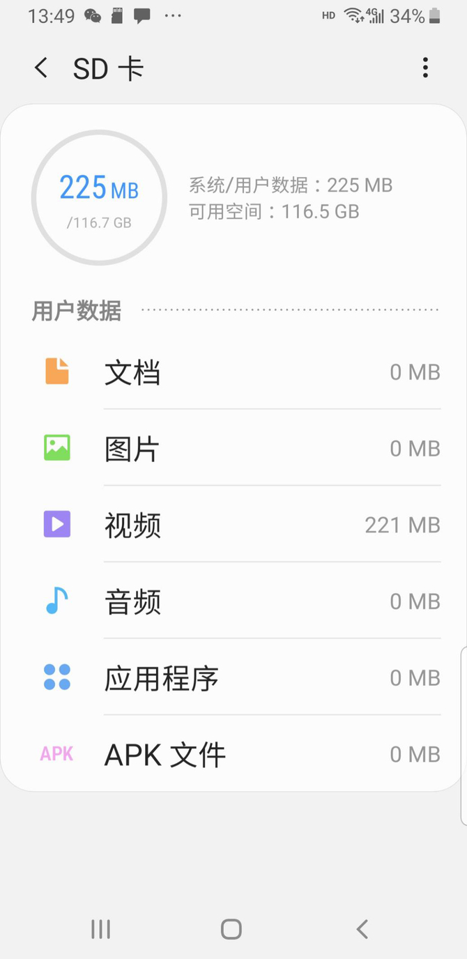 在安卓手机的文件管理器中,已经可以将其证实识别,总容量为116.5GB。