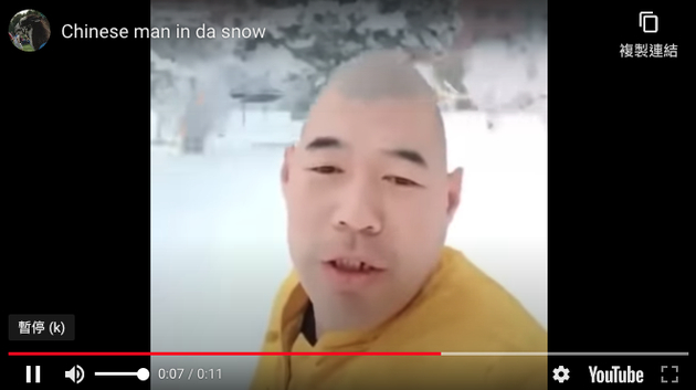 不知怎的,这段视频又被搬运到了YouTube上,还写上“中国男子在大雪中唱歌”。YouTube上迅速飘起第一波“雪花”: