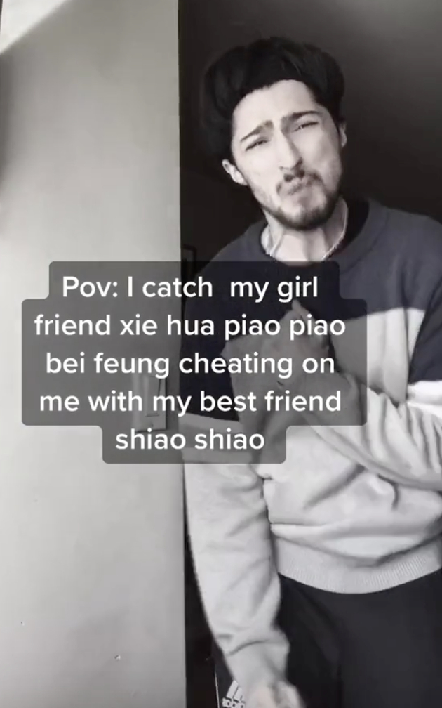 让我们再回到最初的短视频。视频里的男人叫张爱钦,外国网友亲切地称他为“蛋哥”。张爱钦是北京的一名导演、演员和电影制片人。
