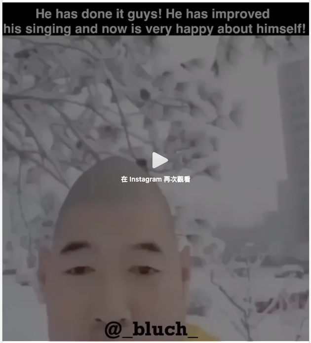3月29日,Instagram用户上传了剪辑版的视频。还是那个雪地里的男子,只是音频替换成了费玉清的原唱。