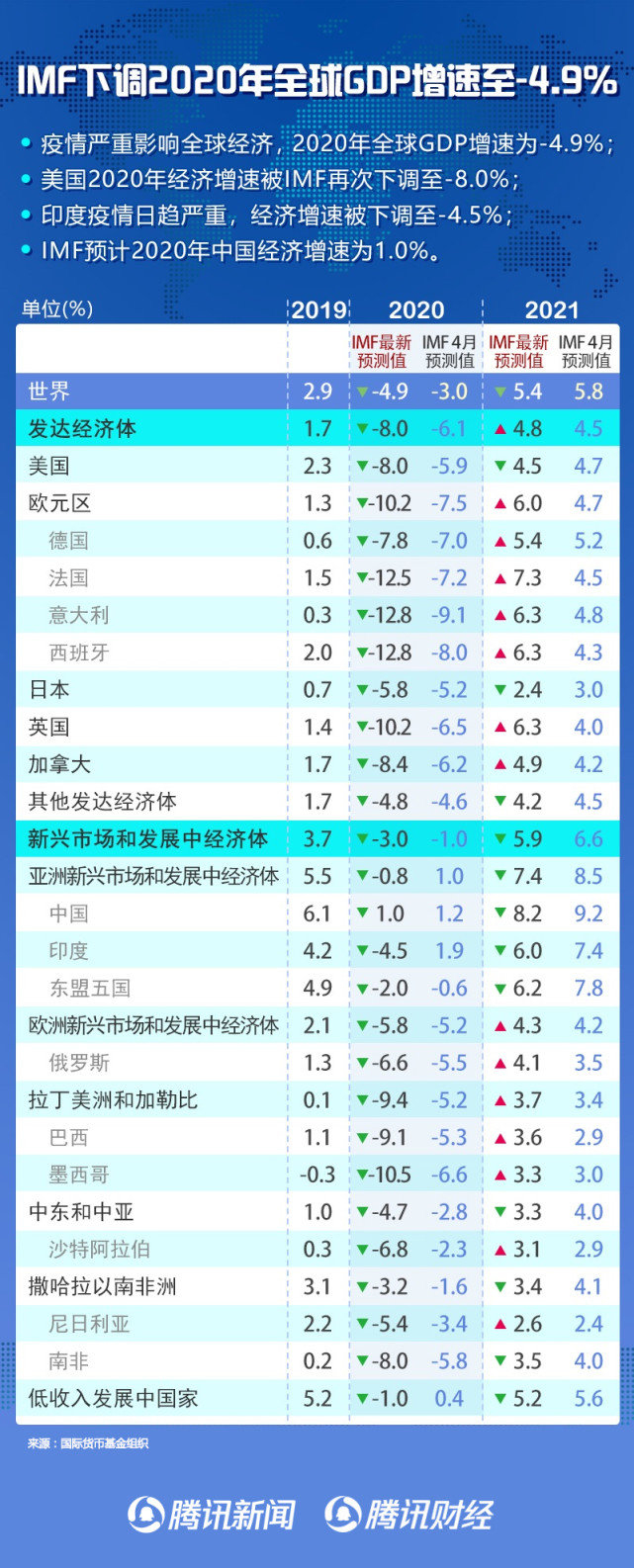 原标题:IMF:预计2020年全球GDP将萎缩4.9%