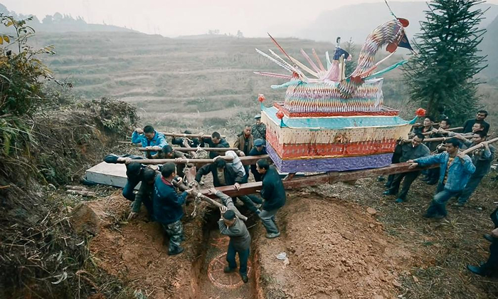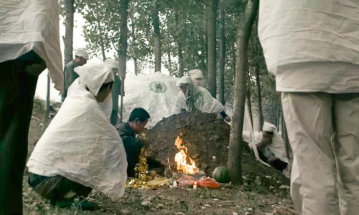 由于死者是遭遇车祸惨死,棺材停放时间不宜过长,需尽快下葬。老孟等人跟着送葬的队伍去往村后河对岸的坟地,哭声嘹亮,悲惨哀痛,哭丈夫、哭儿子、哭舅舅、哭父亲的声音缭绕不绝。