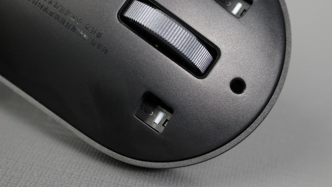 滚轮前侧孔洞中就是「隐藏式麦克风」,左右两边是欧「姆龙小白点微动」开关,虽然点击触感没有游戏鼠标那么干脆,但1000万次的寿命还是很令人放心的。