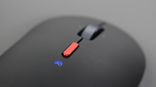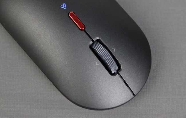 从外观来看就能判断小米小爱鼠标并不是一款专门的游戏鼠标,较平坦的身形和基本左右对称的设计明显更适合日常及办公使用,鼠标整体为内敛的磨砂黑主色调,但背部的红色金属按钮和小爱同学指示灯令其不会显得过于商务,抗菌材料打造的壳体让人用起来也更放心。