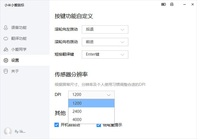 安装驱动后,在管理软件中就可以自定义滚轮的左右键并调整鼠标的DPI,小编习惯将滚轮左右分别设置为后退前进,DPI则只有1200/2400/4000三档可调,显得有点粗放了,用户可能会卡在低一档不够,高一档又太过的情况,可以自己找一个更靠近一些的值再适应一下。