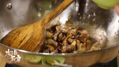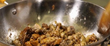 放入鸡块,开大火反复翻炒10-15分钟!