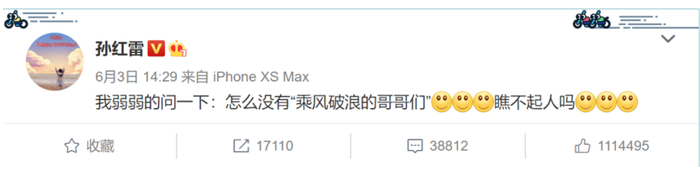 在近日大热的综艺《乘风破浪的姐姐》播出之前,演员孙红雷就曾在微博发问:“怎么没有乘风破浪的哥哥们?瞧不起人吗?”
