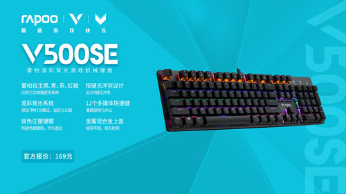 绽放金彩,雷柏V500SE凭借一贯的物超所值、大厂风范,践行着全民机械键盘的普及。金彩不断,纵享游戏,169元的雷柏V500SE混彩背光游戏机械键盘,即刻照亮你的游戏梦想。