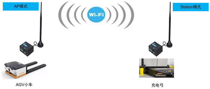 如图6所示,无人配送车(或者大型搬运AGV)和充电弓分别内置CANFDWiFi-100U转换器,完成握手匹配,实现降弓充电。用户可实时查看电池容量、电压、电流等参数,可对充电故障实时监控,保证充电安全。