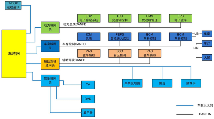 如图3所示,是新一代智能网联汽车整车架构。从图中可以看出,新一代汽车整车架构中车载以太网与CAN FD共存,而绝大多数ECU是通过CAN FD来通讯的。这就意味着,新一代智能网联车在通过无线技术控制充电的过程中,存在着CAN FD转Wifi的需求,进而实现CAN FD控制通讯,无线技术控制汽车的快速充电。