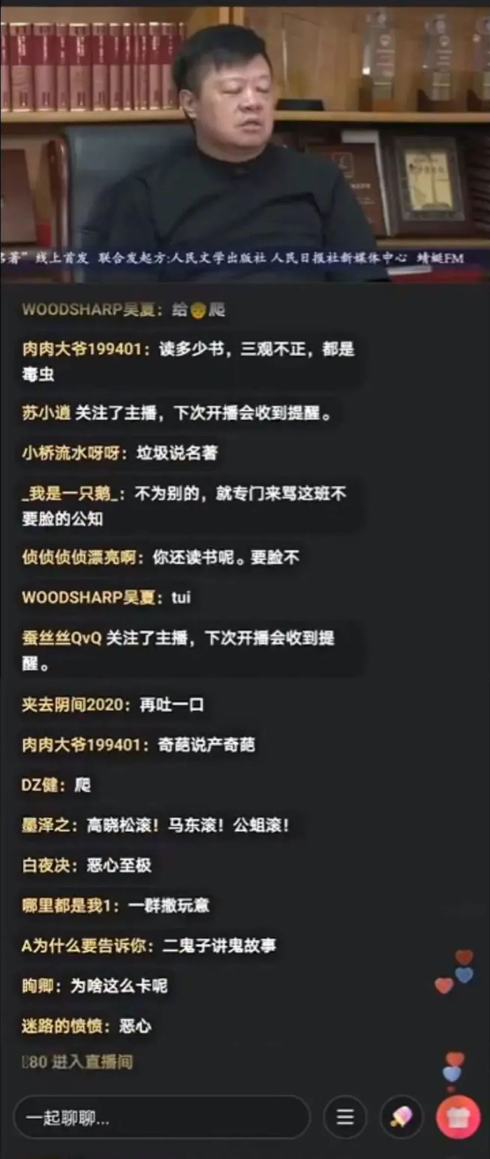 可没想到,直播间评论区里却是骂声一片,“垃圾”“毒虫”“狗屎”等侮辱性字眼比比皆是。