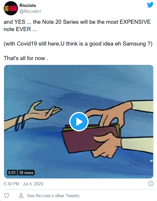 我们距离三星秋季旗舰机Galaxy Note 20和Note 20 Ultra的发布仅有数周时间。预计这两款手机将在Note 10系列的基础上进行改进,采用类似的设计,但有望迎来更强大的摄像头和更细的边框。尽管在核心技术上没有突破新的领域,不过据意大利泄密者Ricciolo透露,这款手机有望在价格上“向上突破”。