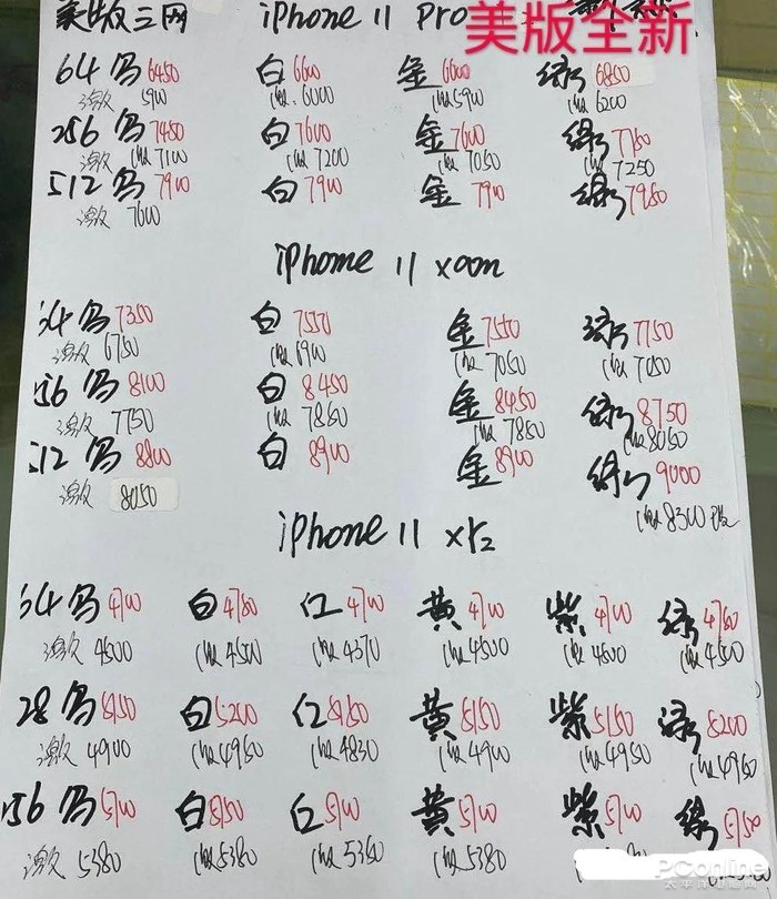 根据四三拿到最新的华强北iPhone各个版本价格表中,美版64G的iPhone 11价格无论是激活还是全新,价格都在4500~4700元,而日版则为4300~4760元。