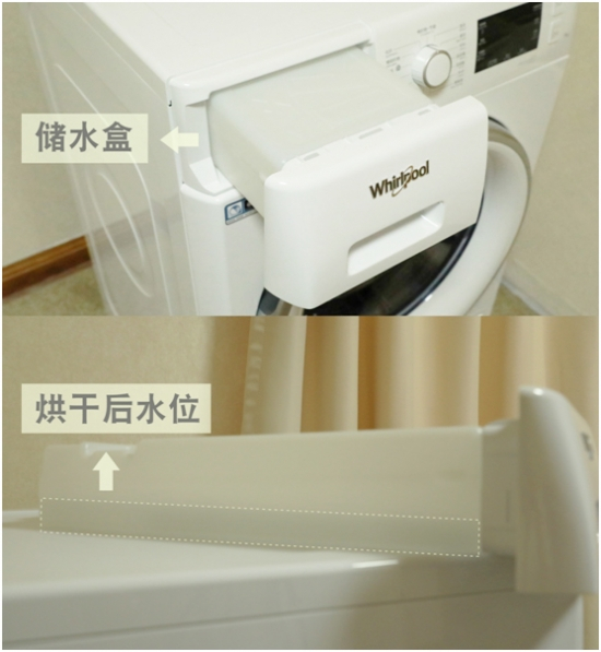 笔者知道您在担心什么,干衣机多少还是会排出一些水,您是怕除了卫生间没有合适的排水道。惠而浦这款干衣机除了管道排水外,还具备大容量储水盒,我们清洗的可不止上述内容中的衣物,却连三分之一的储水量都没达到,所以您想将干衣机放在哪个角落都没问题。