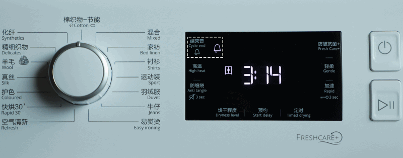 答案是肯定的,它共具有结束音、高温、防缠绕、烘干程度、预约、定时、加速、轻柔、防皱抗菌+九种辅助功能,笔者觉得以下几款功能十分实用。