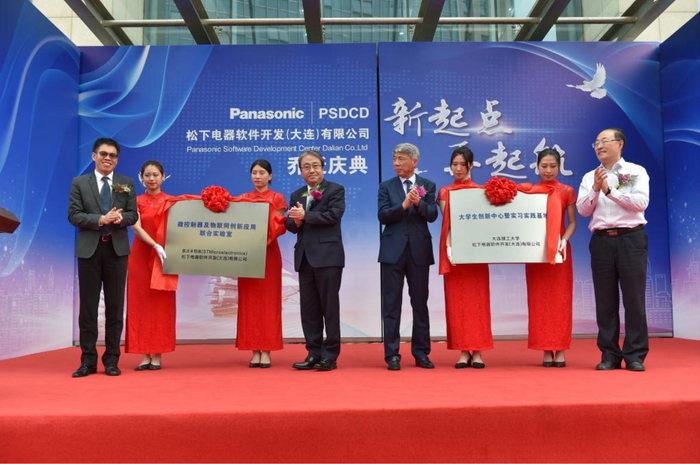 当日庆典,大连高新技术产业园区党工委委员、管委会副主任原驰、大连理工大学招生就业处处长于海晨、意法半导体(ST) 总监曹锦东、以及各个相关公司的代表悉数出席,松下集团方面CTO宫部义幸、中国东北亚公司总裁CEO本间哲朗通过松下高清会议系统(HD-COM)出席了活动。