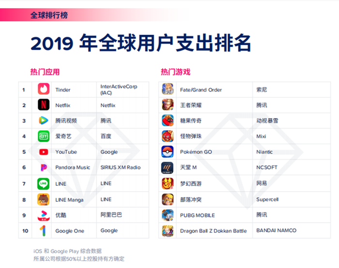 2012年,Match Group的核心产品Tinder在美国上线,开启了“左滑右滑”的社交时代,创新的社交方式让Tinder迅速流行起来,风靡多国。App Annie的《2020移动市场报告》显示,Tinder在全球用户支出方面排名第一,超过流媒体平台奈飞、腾讯视频等。