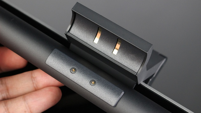 底座与触点的接触设计成了条形,这令灯体本身具备了约25°的俯仰调节范围,用户可以根据自己的电脑桌高度、显示器高度等实际情况进行一定调整。