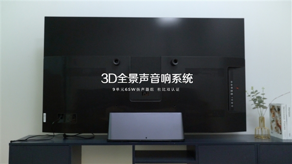 背面是发声的:杜比全景声2.1.2音响排布结构,新增天空声道,利用穹顶反射技术 将声音聚拢在头顶,形成3D空间声场。9单元扬声器组,65W超大功率,超潜独立重低音炮,1.9L大音腔, 50Hz超低频。