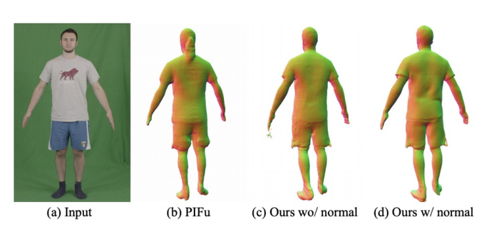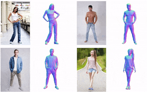 基于该团队之前开发的 PIFu(像素对齐隐式函数)算法,分成两个原理相同,但功能不同的模块: