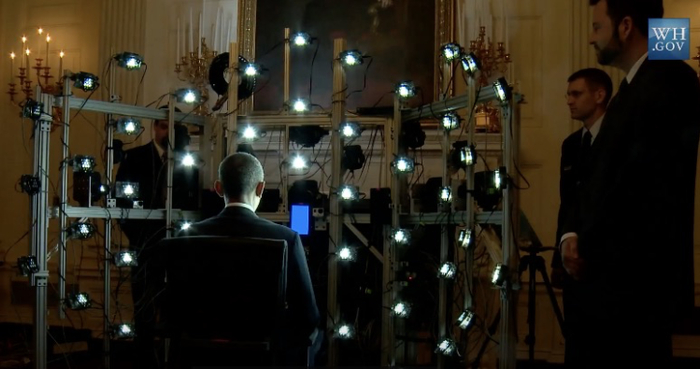 最经典的方法是采用多台相机,从多个角度拍摄对象的照片,以及采用手持的结构光扫描设备,进行全方位的扫描,再在专业的软件中进行拼贴重建。2014年史密森学会制作前美国总统奥巴马的3D肖像,就是用的这种方法: