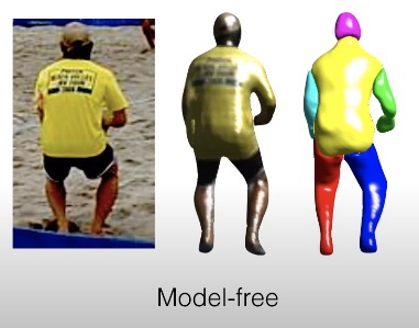 另一种方向是无模型学习,可以还原人体的表面细节,但是模型本身的还原度很低,而且对计算资源的依赖太大。