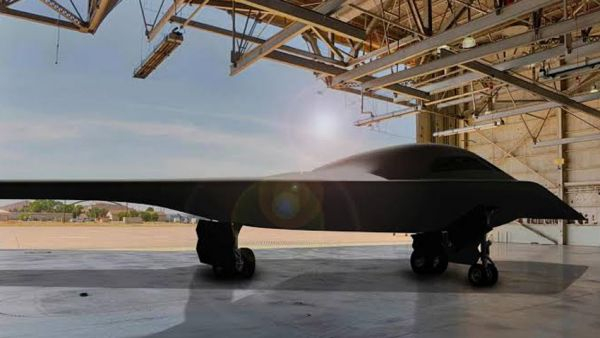 资料图片:美空军新公布的B-21隐身轰炸机想象图。(美空军官网)