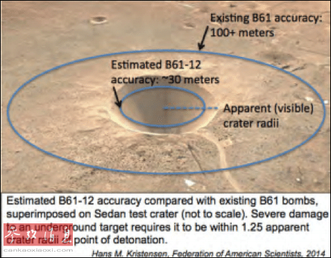 图为B61-12核弹与老式B61核弹的命中精度对比图,大圈为老式B61核弹,小圈为B61-12,可见其打击精度的革命性提升。