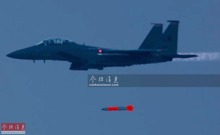 近日,美国桑迪亚国家实验室首曝美空军在位于内华达州托诺帕靶场进行B61-12战术核弹空投测试的视频,对俄战略威慑意味十分明显。图为美军F-15E战机投放B61-12核航弹瞬间。