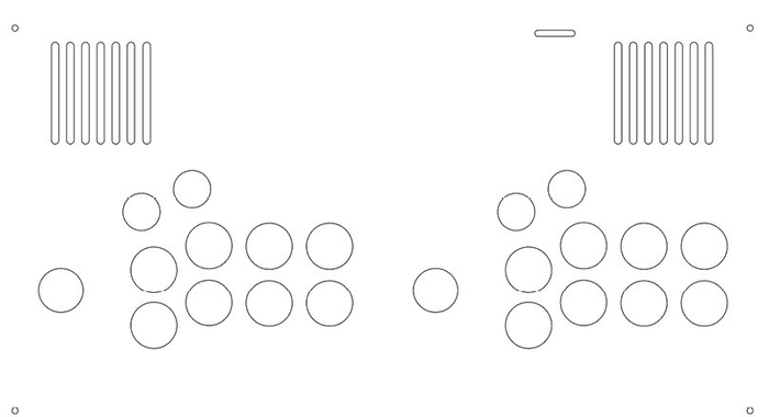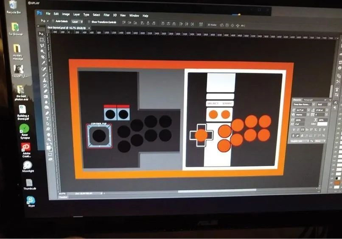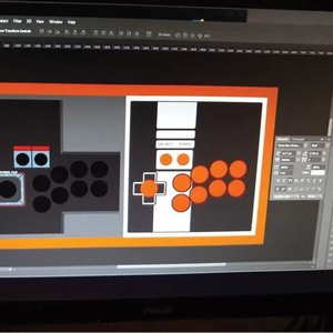 首先,我在 Adobe Photshop 和 Illustrator 里,用自己选的街机控制器部件尺寸来设计按钮和操纵杆的布局。