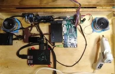 关于显示屏,我从一台坏掉的笔记本电脑上回收了一个 15.6 寸 LCD 屏幕。接着我在 eBay 上查了下型号,找到对应合适的 LCD 控制器板。这样我就能用一根很短的 HDMI 线将屏幕和改装过的扬声器连接到树莓派上了。