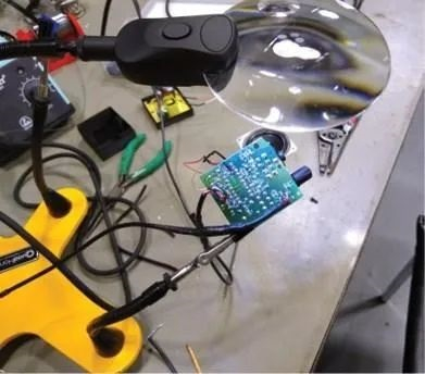 对于音响方案,我也重复利用了下旧台式机的扬声器。首先给扬声器从外壳中弄出来,上老虎凳,哦不老虎钳。然而,当我给扬声器和电子零件弄出来时候,犯了一个大忌,部件动得太频繁了。导致本不该动的电线被弄断了。这时候又得召唤焊接枪,到处焊焊,再弄些热胶补救一下。反正能用就行。